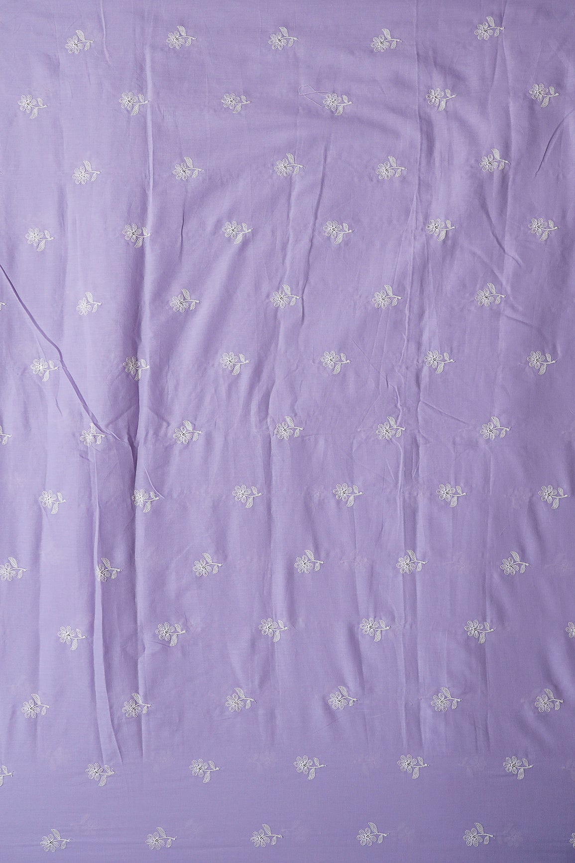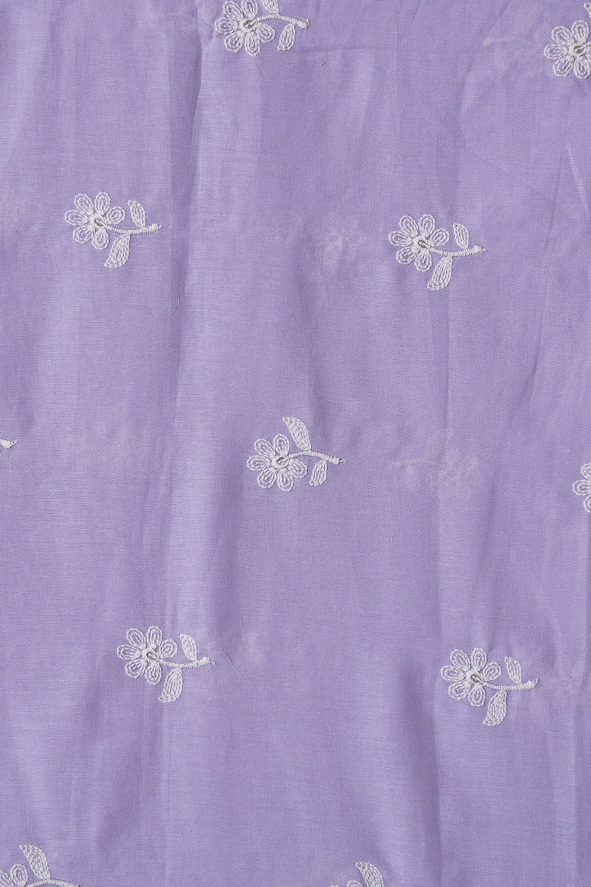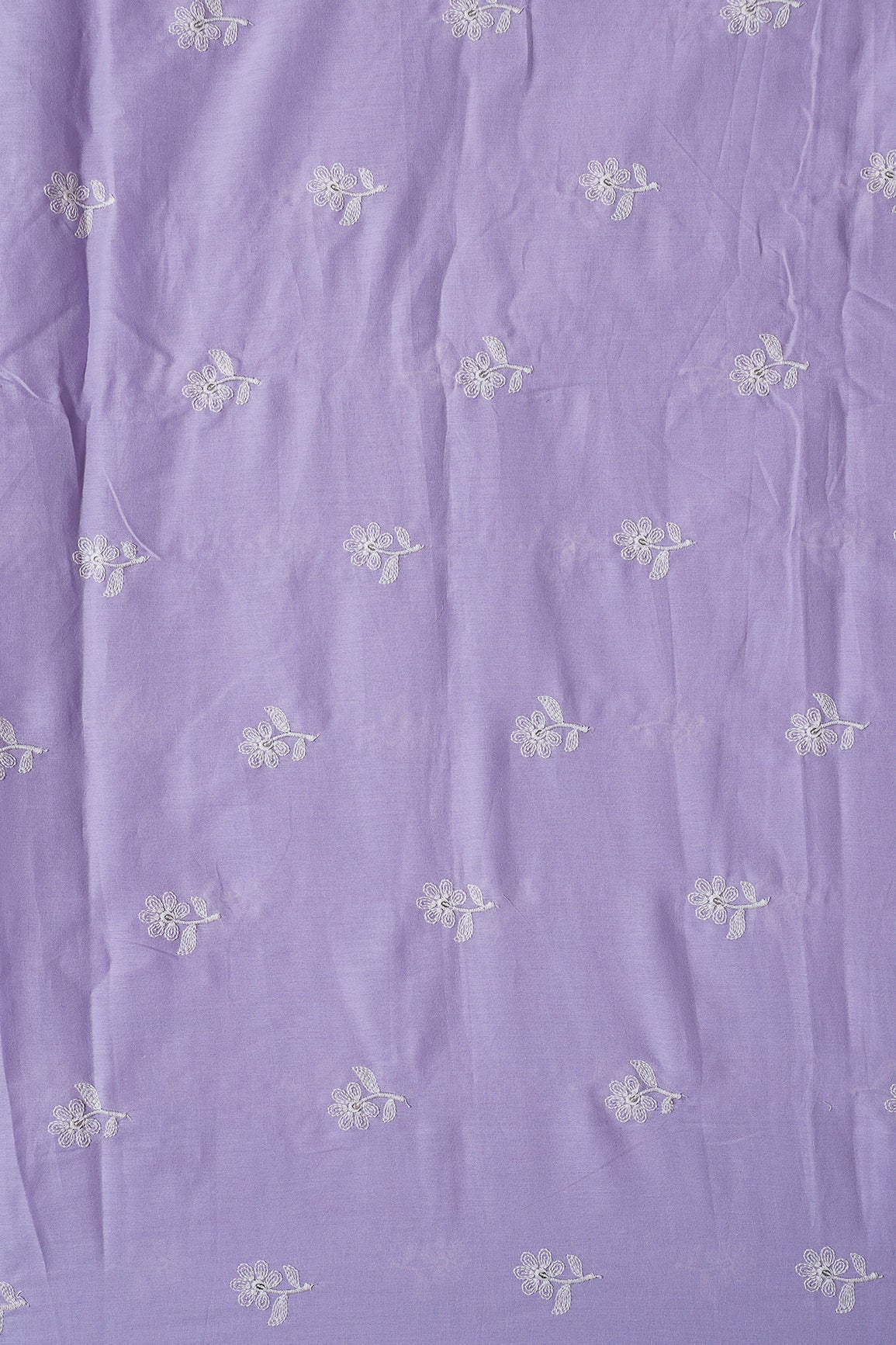 White Thread Small Floral Embroidery On Lavender Pure Mul Cotton Fabric