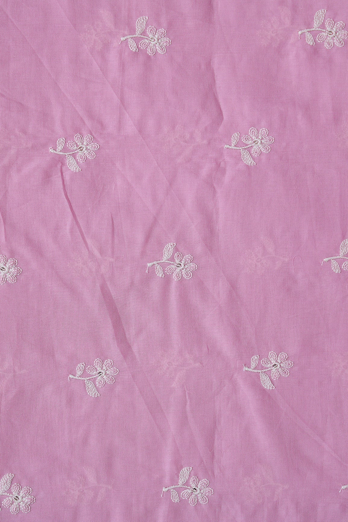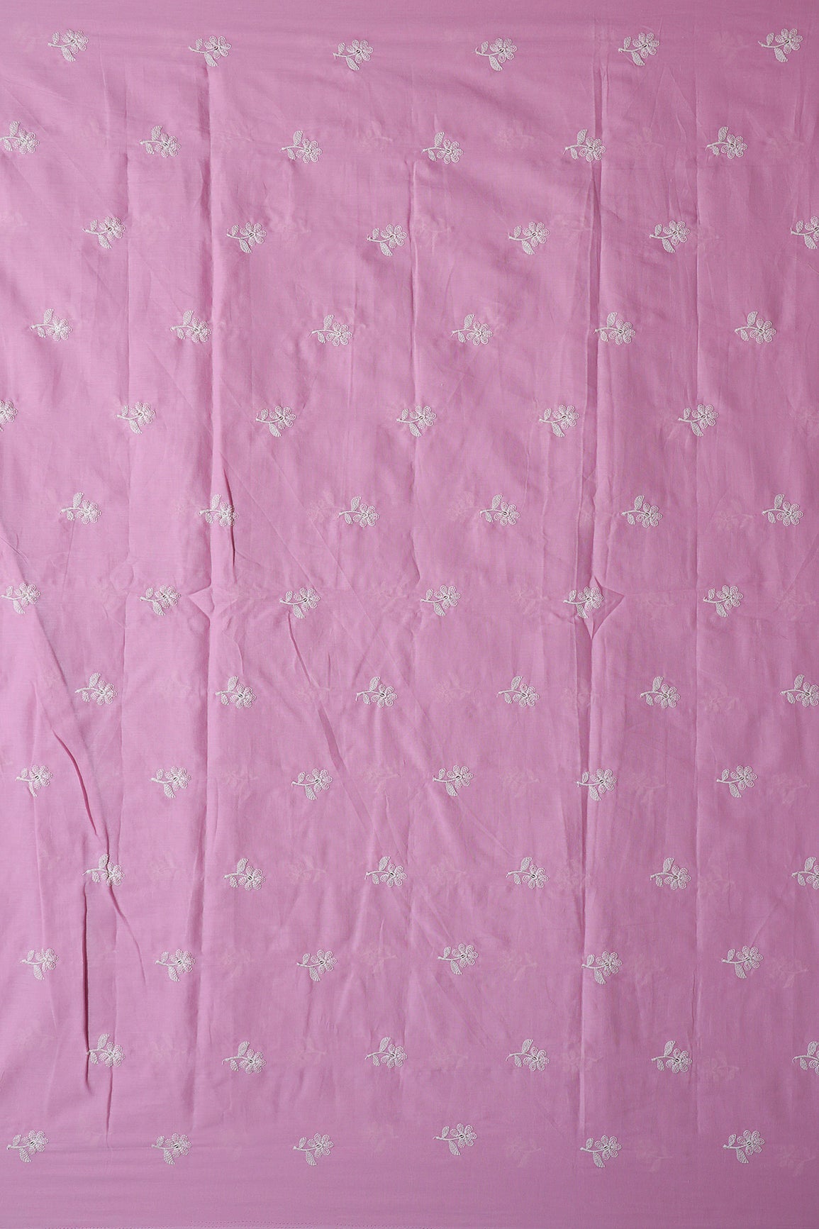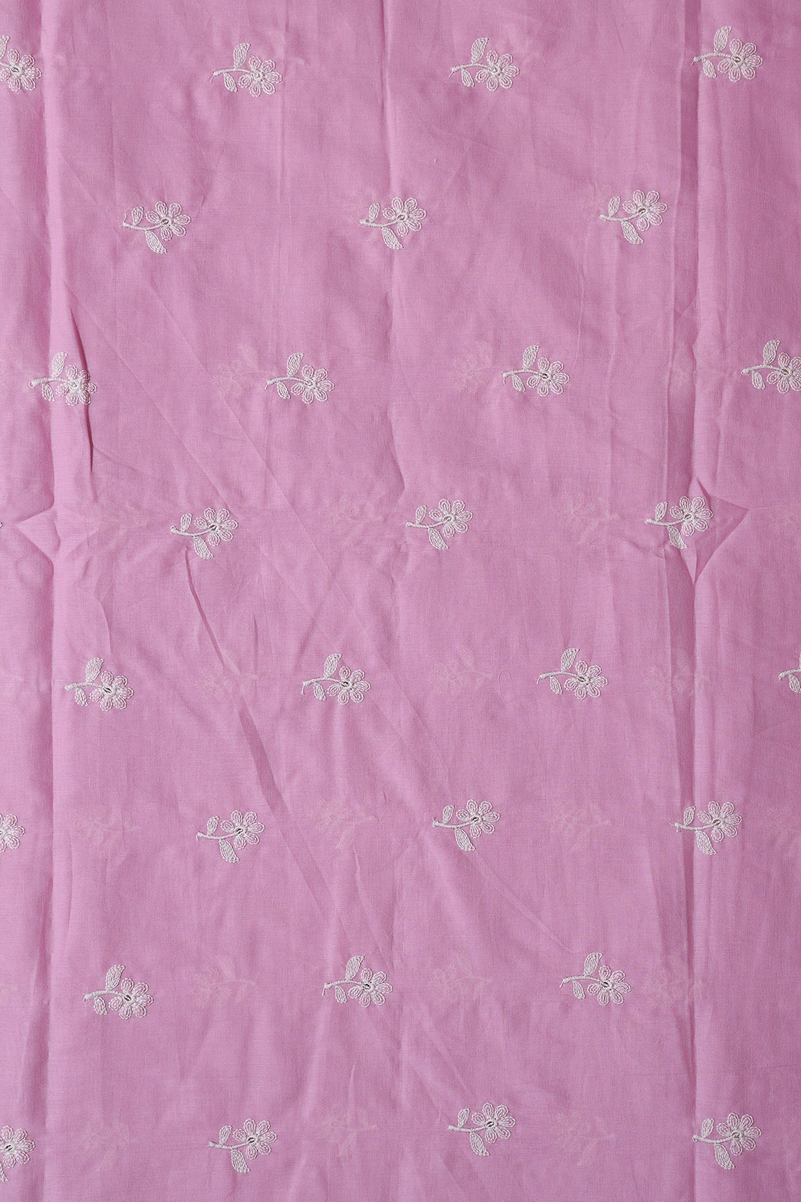 White Thread Small Floral Embroidery On Lilac Pure Mul Cotton Fabric