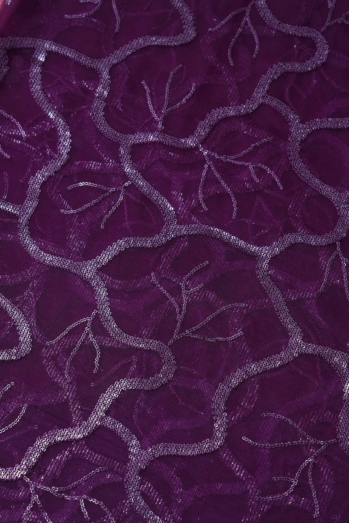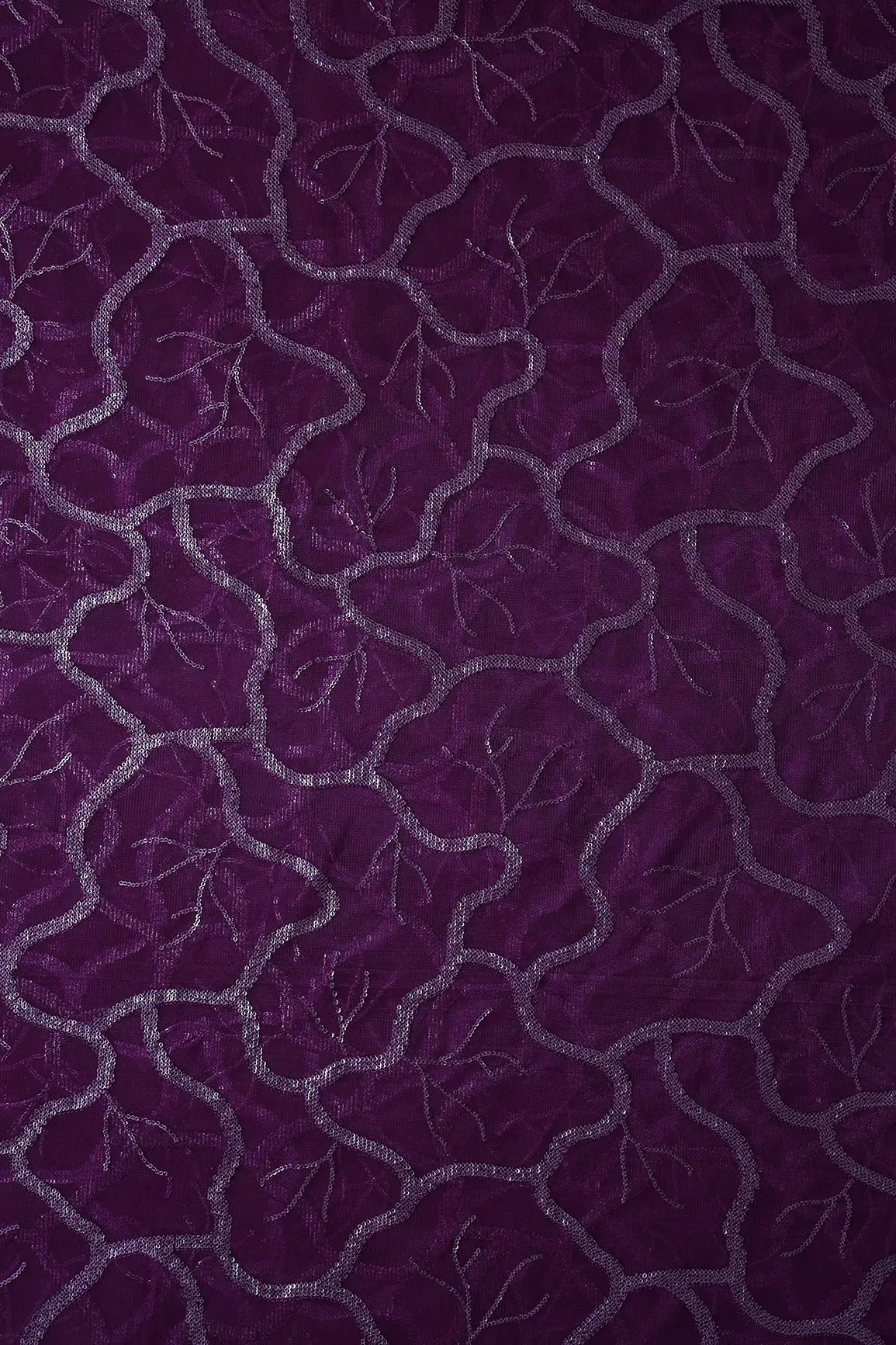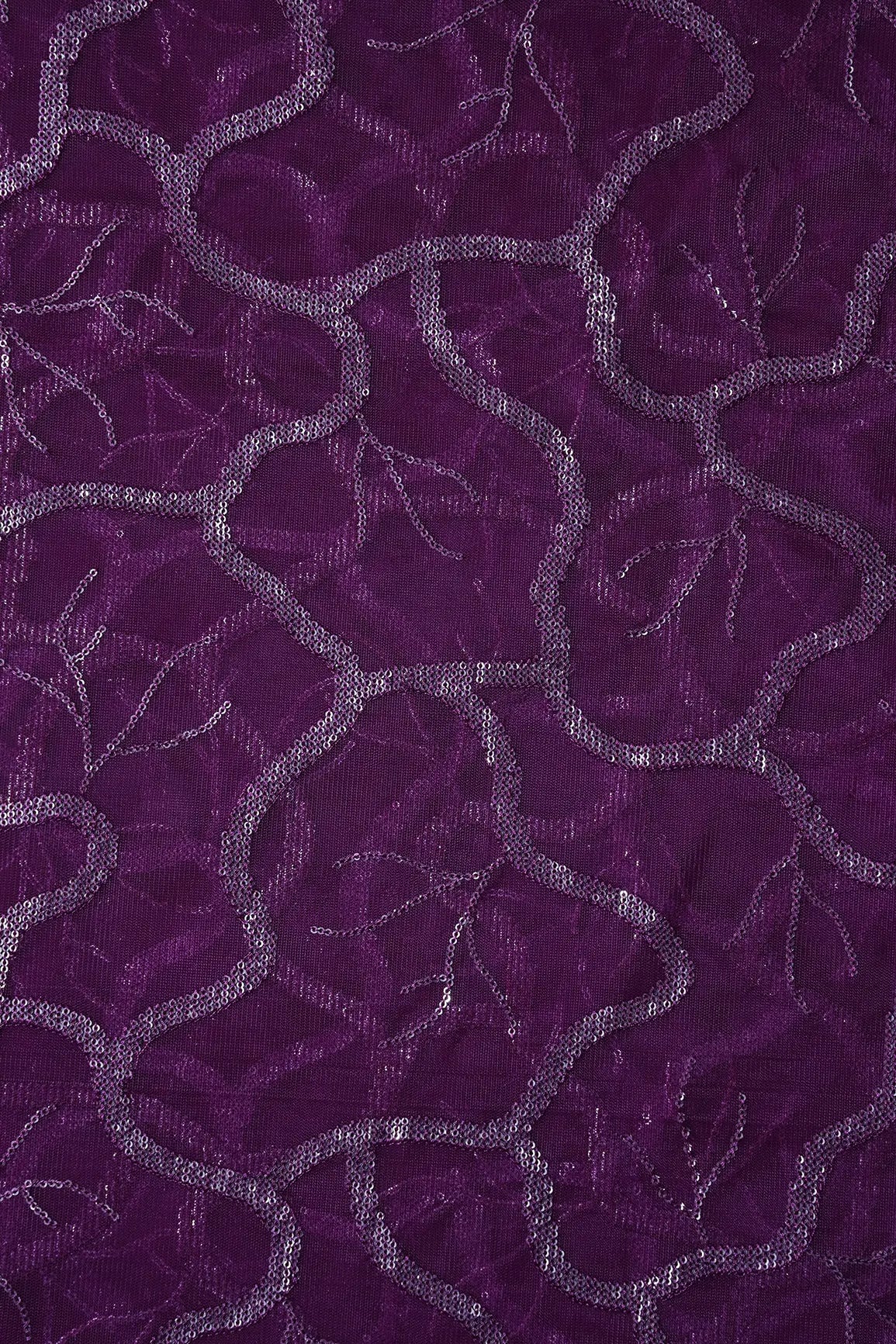 Wine Thread With Water Sequins Abstract Embroidery Work On Wine Soft Net Fabric