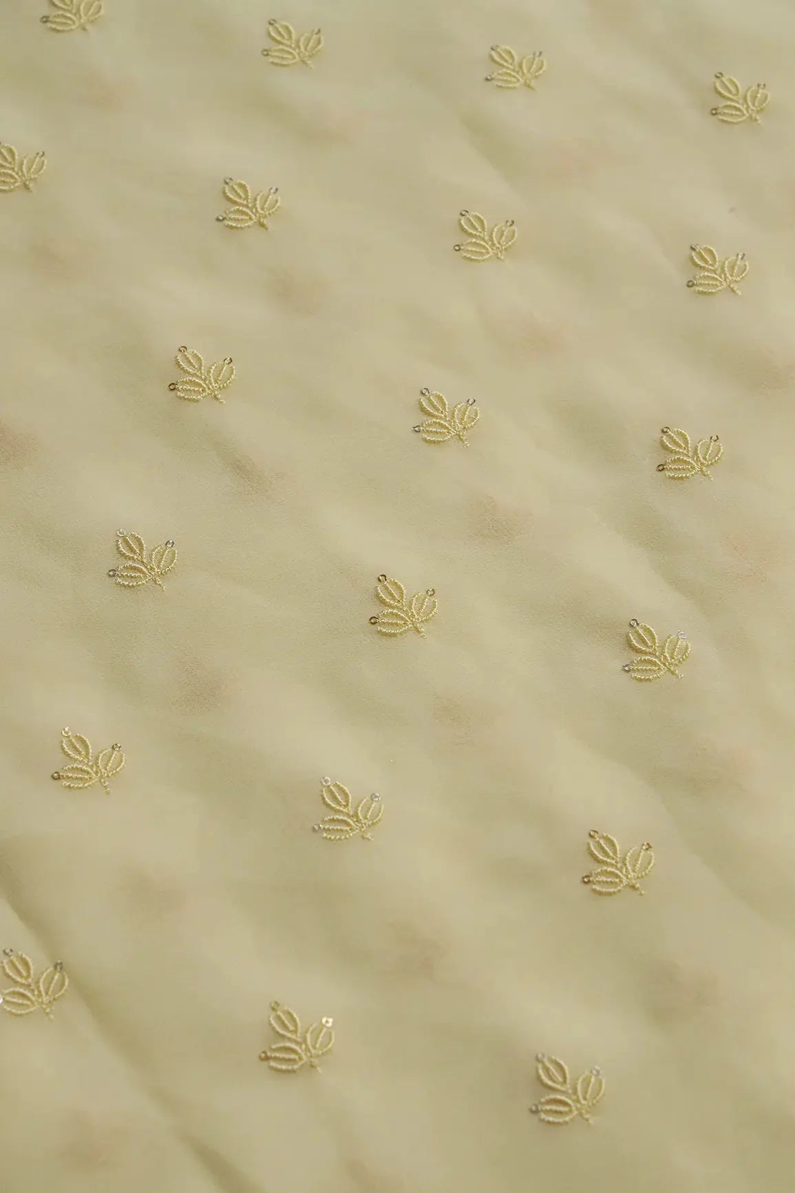 Yellow Thread With Sequins Small Leafy Embroidery Work On Light Yellow Georgette Fabric