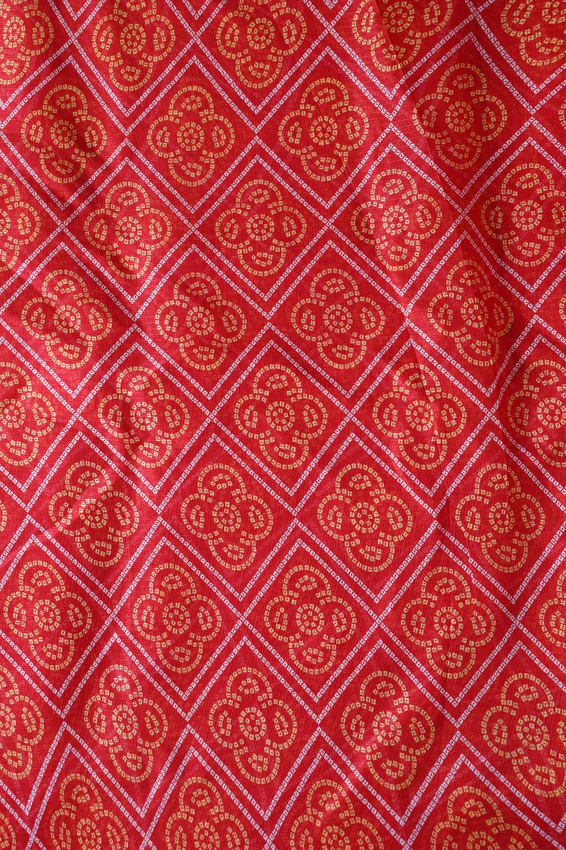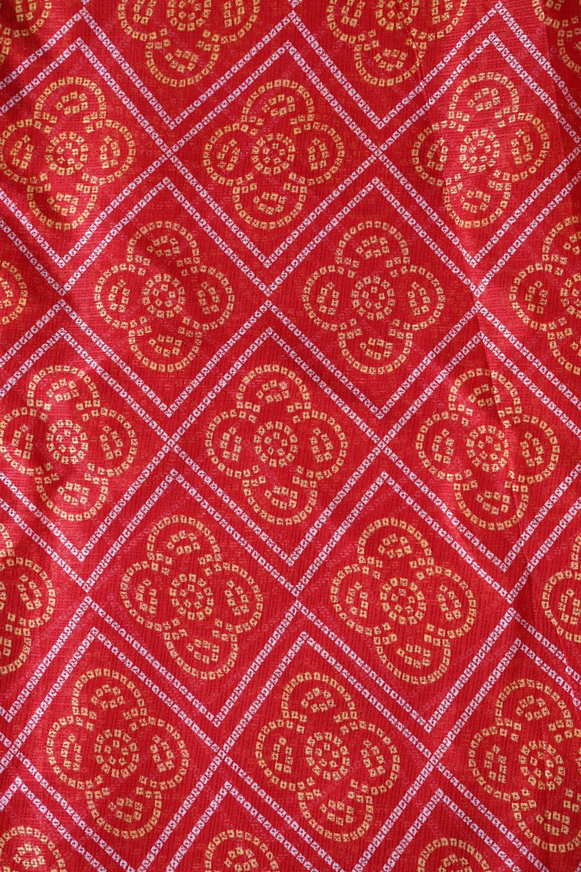 White And Yellow Bandhani Print On Red Kota Doria Fabric