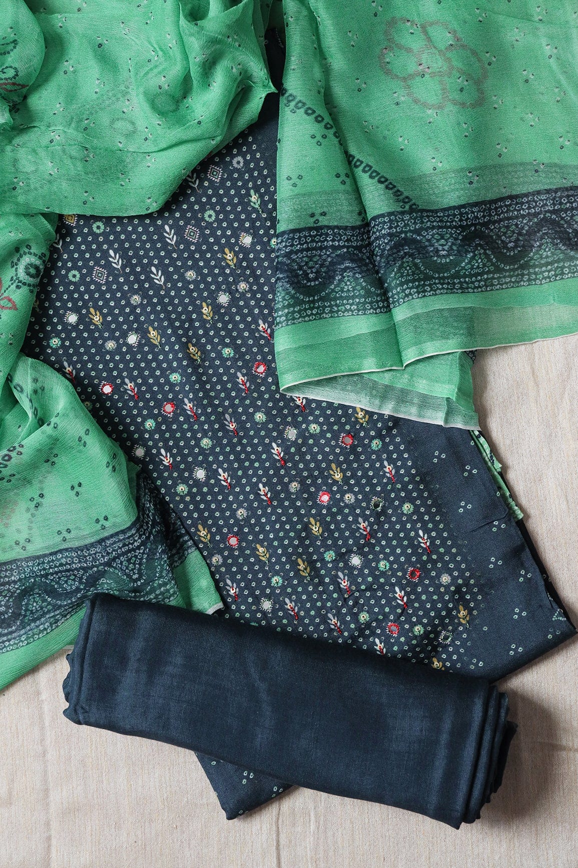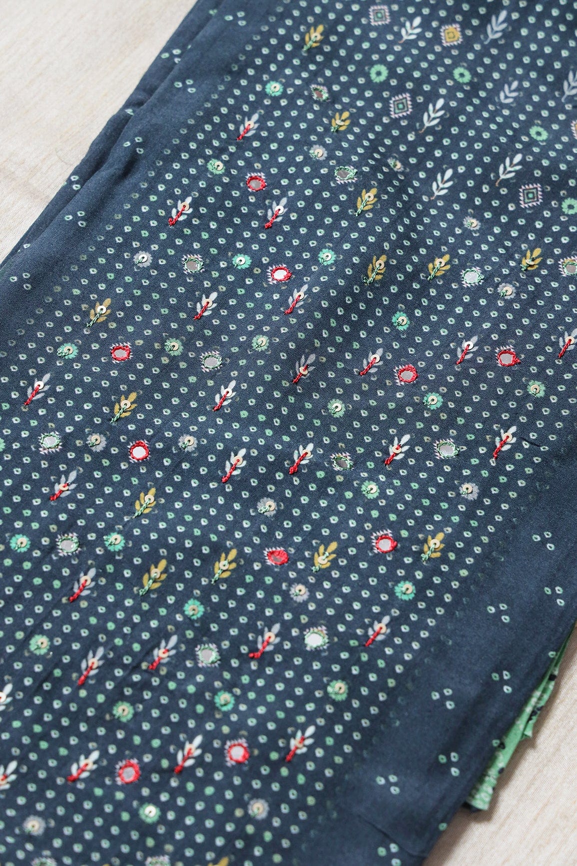 Fabric 1/ Top : Maroon And Mint Green Thread With Sequins And Foux Mirror Work On Navy Blue Pure Muslin Fabric