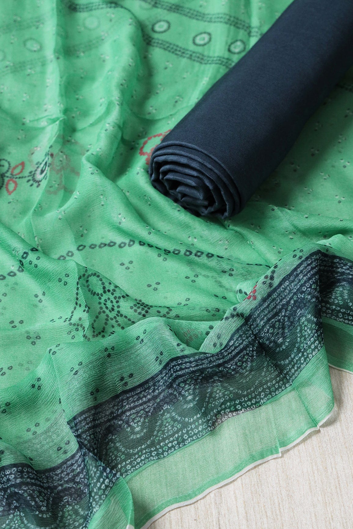 Fabric 3/ Dupatta : Mint Green Color Printed Pure Chiffon Dupatta