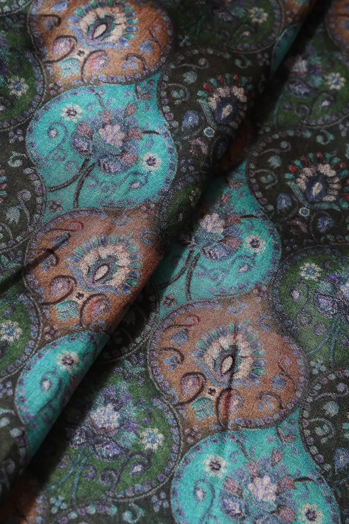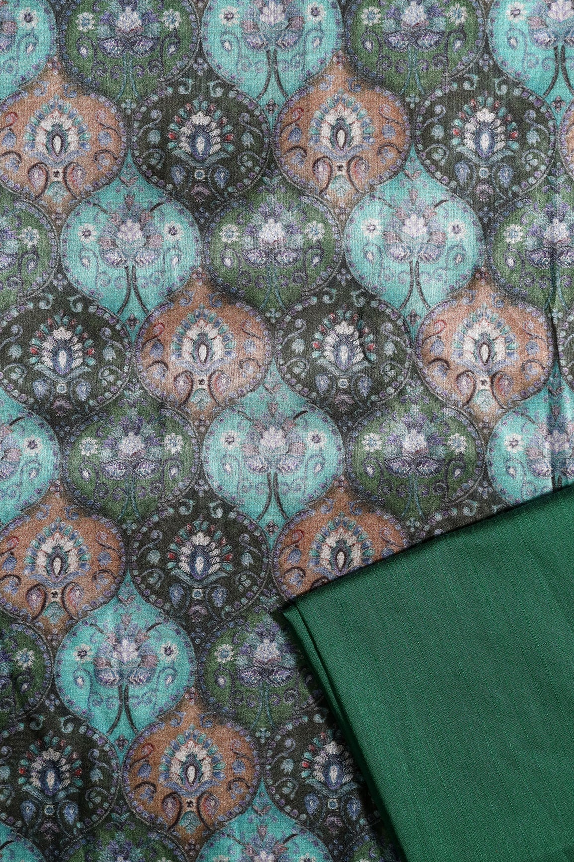 Fabric 1/ Top : Teal And Green Trellis Pattern Digital Print On Mulberry Silk Fabric