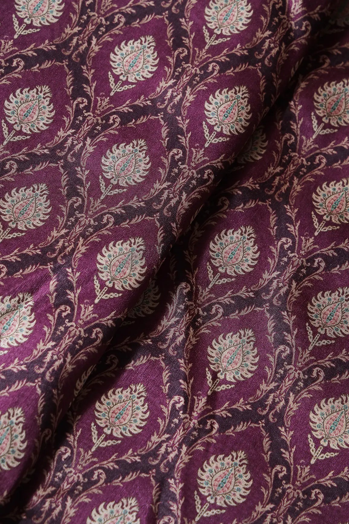 Fabric 1/ Top : Cream Trellis Pattern Digital Print On Wine Mulberry Silk Fabric