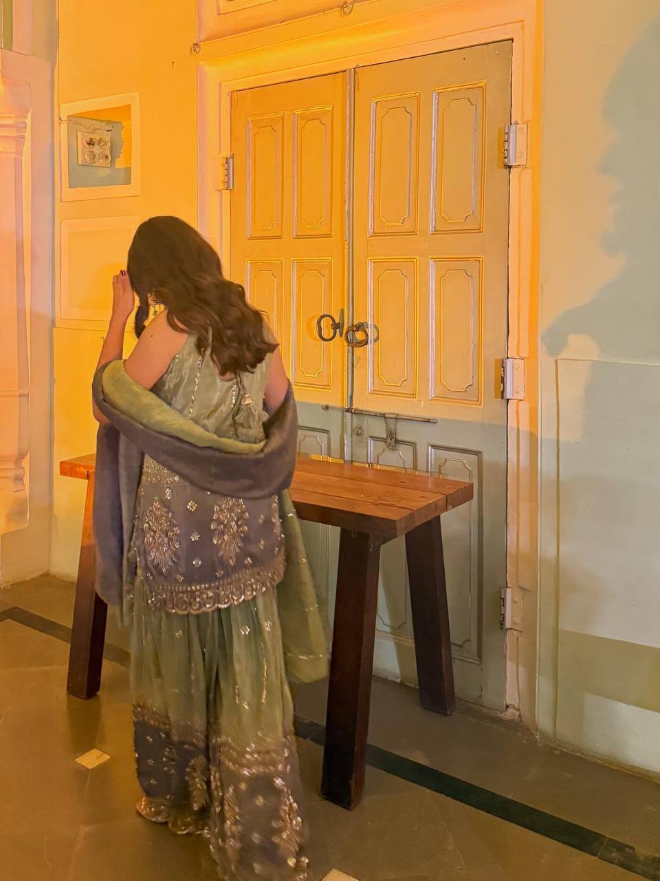Modern style meets traditional charm, making this designer sharara set a perfect choice for elegant ethnic wear.