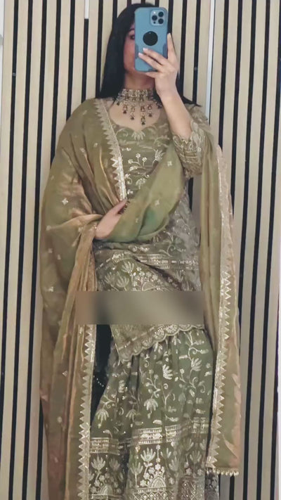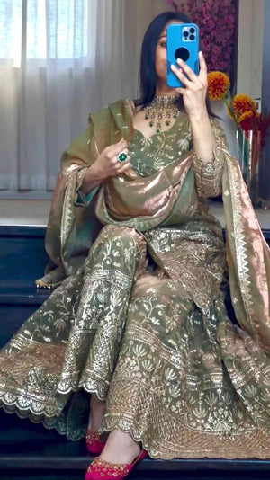 Designer GMY Silk Embroidered Top Sharara Set with Dupatta