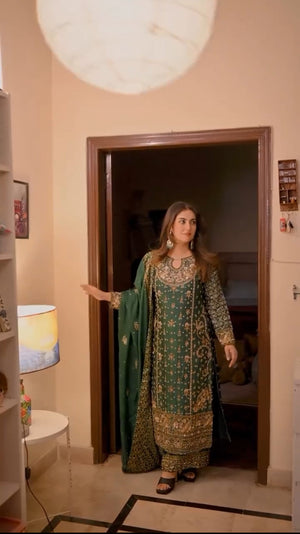 Make a statement at parties and festive occasions with this elegant designer top plazzo set. Crafted from heavy faux georgette and adorned with detailed 5mm embroidery sequence work, this fully stitched, ready-to-wear ensemble offers a perfect blend of comfort, elegance, and premium craftsmanship.