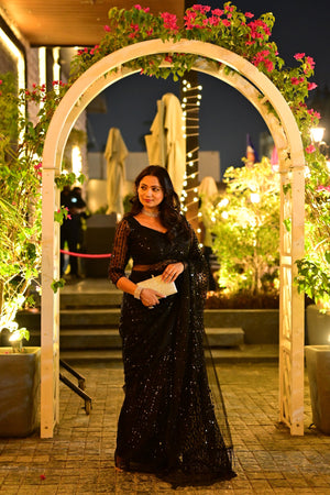 Saree : Net Saree With Heavy Sequence And Thread Work Plus Jhalar Border