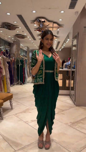 ✨ Exclusive One Piece Cowl Dress with Shrug – Elegant Party & Festive Wear