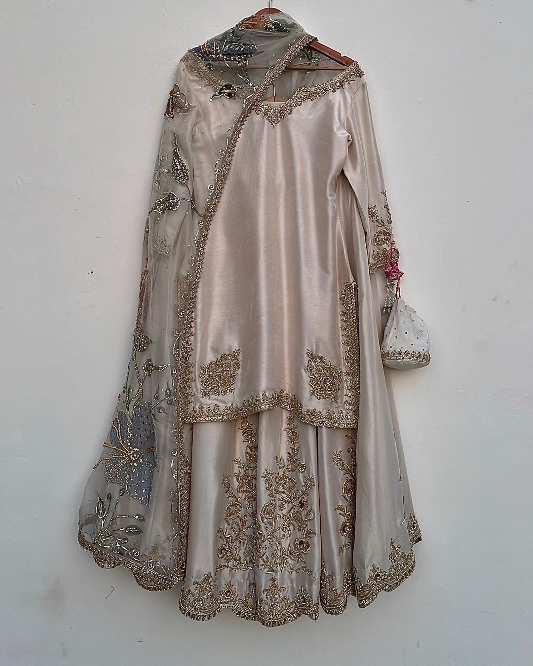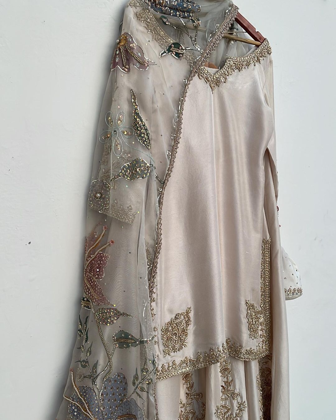 Fully Stitched and Fully Flared Sharara with zardosi and cut daana