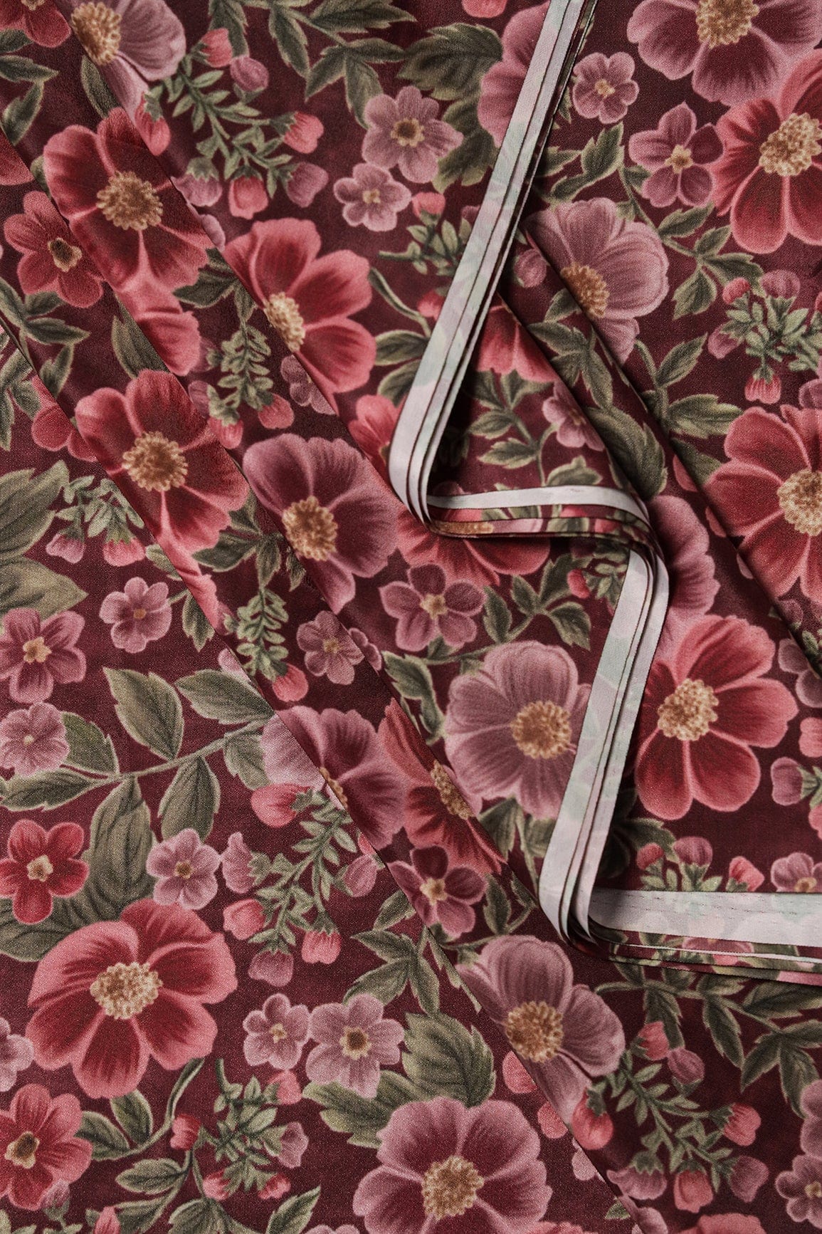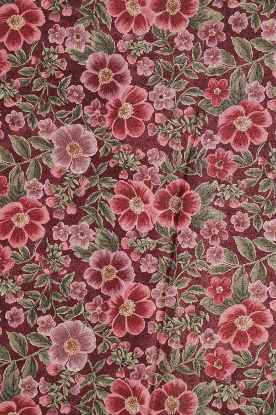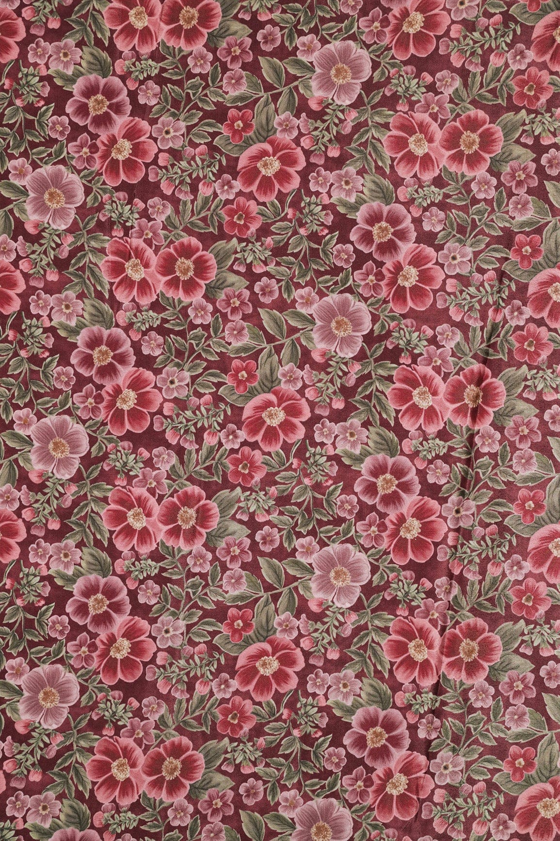 Maroon And Olive Floral Digital Print On Dark Brown Crepe Fabric