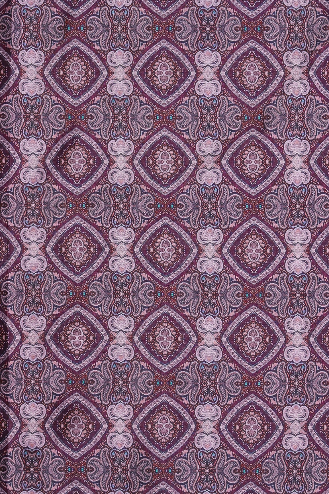 Mauve Traditional Pattern Digital Print On Wine French Crepe Fabric