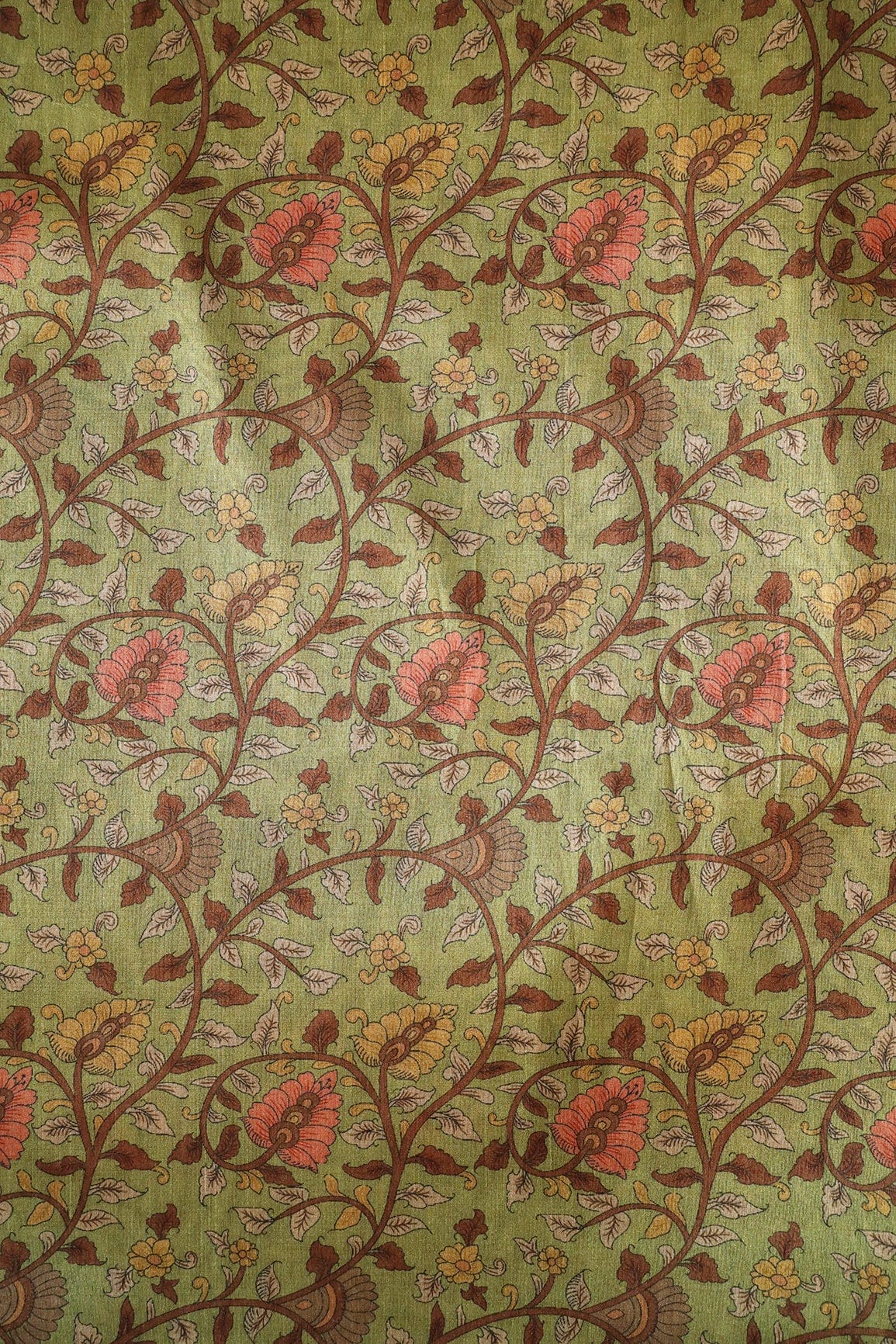 Mehendi Green Floral Pattern Digital Print On Mulberry Silk Fabric