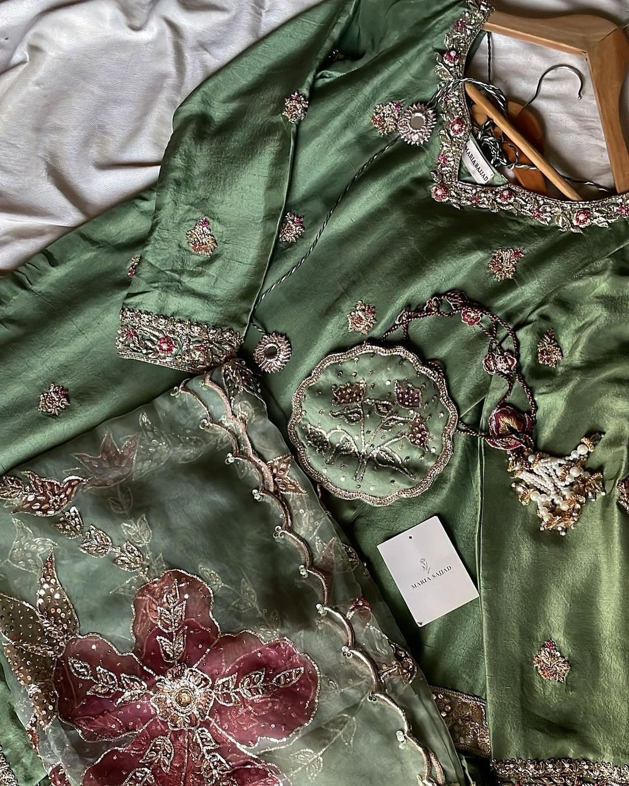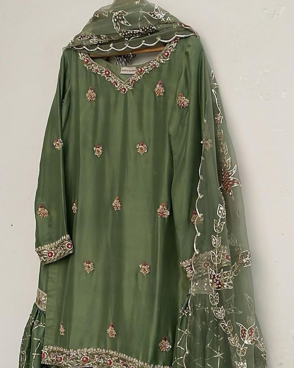 Fully Stitched and Fully Flared Sharara with zardosi and cut daana