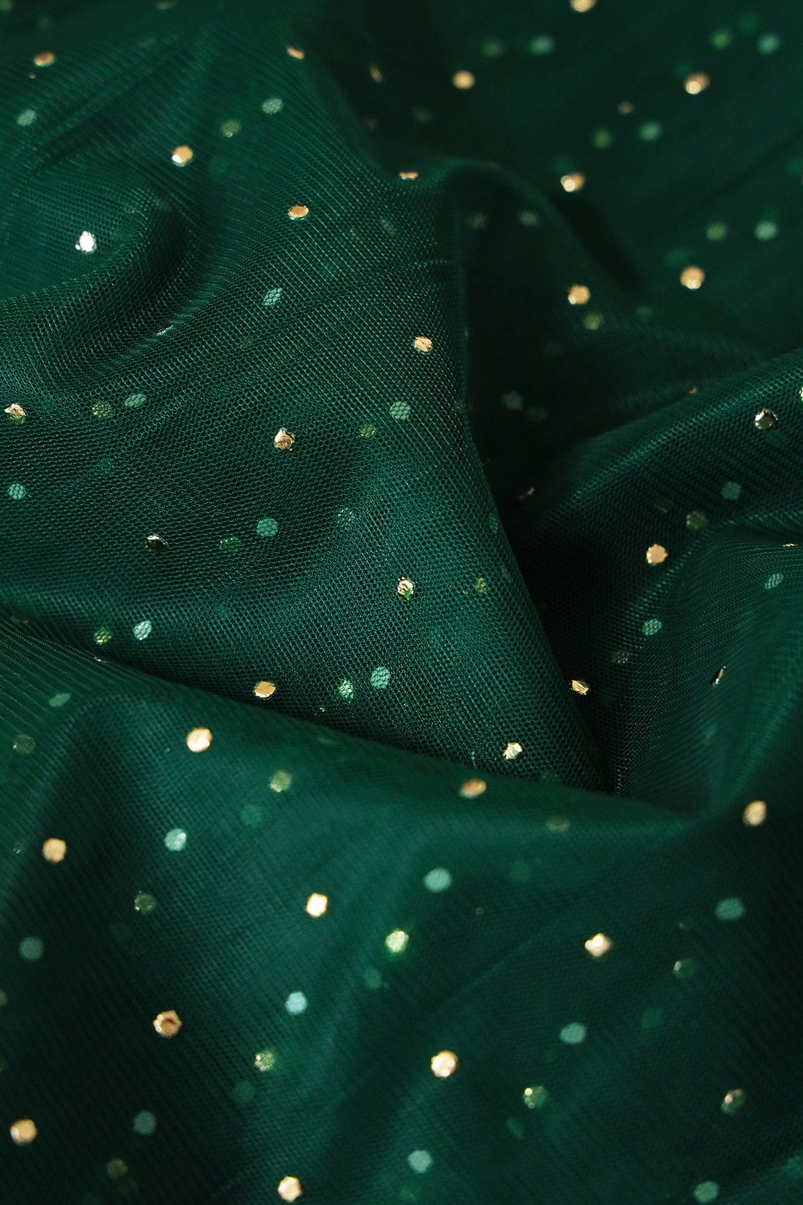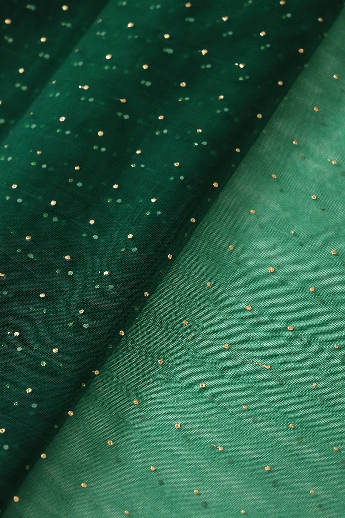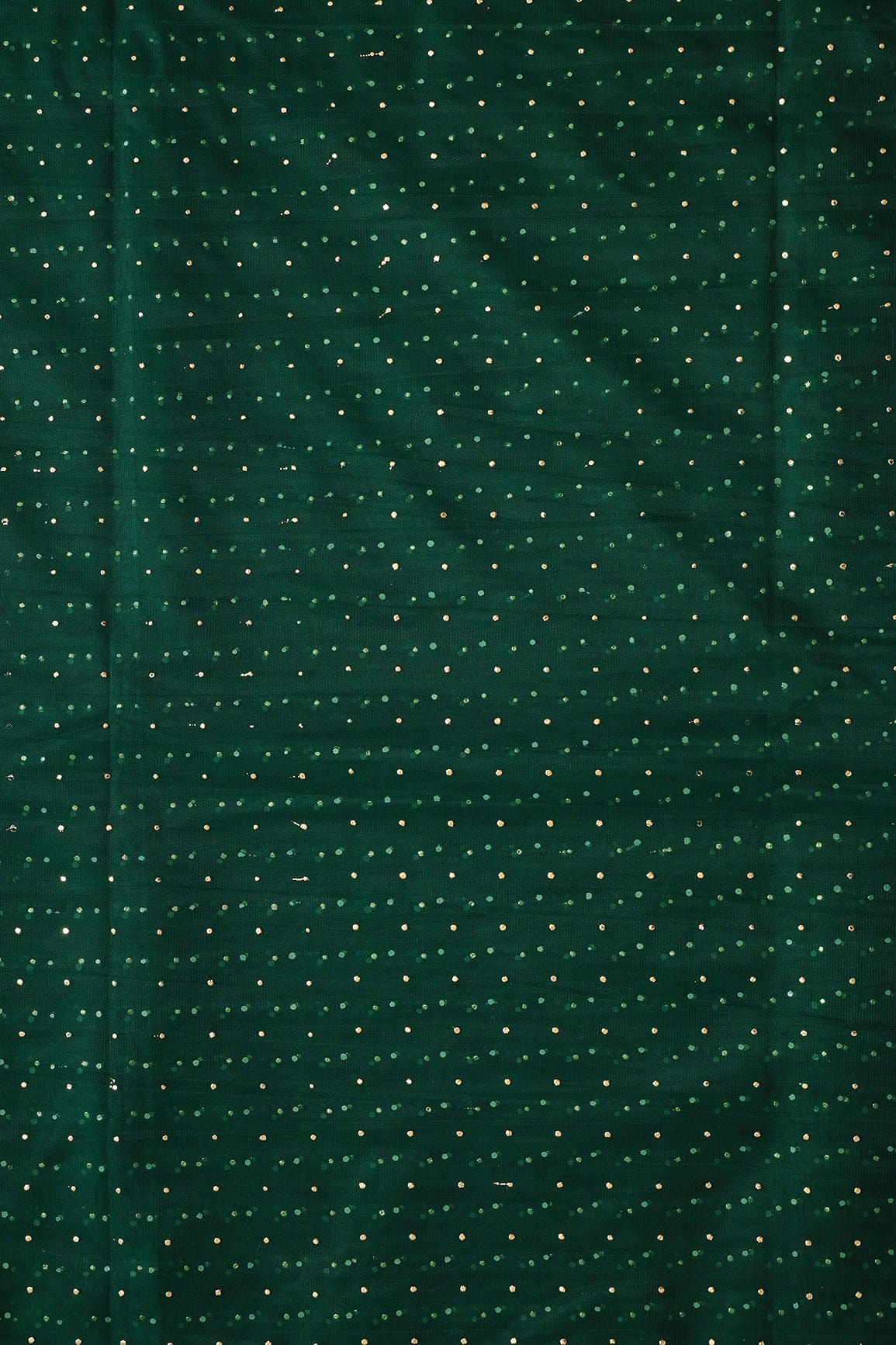 Mukaish work is a type of embellishment work that involves inserting strips of metallic wire into cloth and twisting them to produce metallic embroidery. Originally devised centuries ago as an embroidery technique to embellish royal evening dress, mukaish is immediately recognizable as a dotted pattern in silver or gold metal. This work is done on soft net fabric.