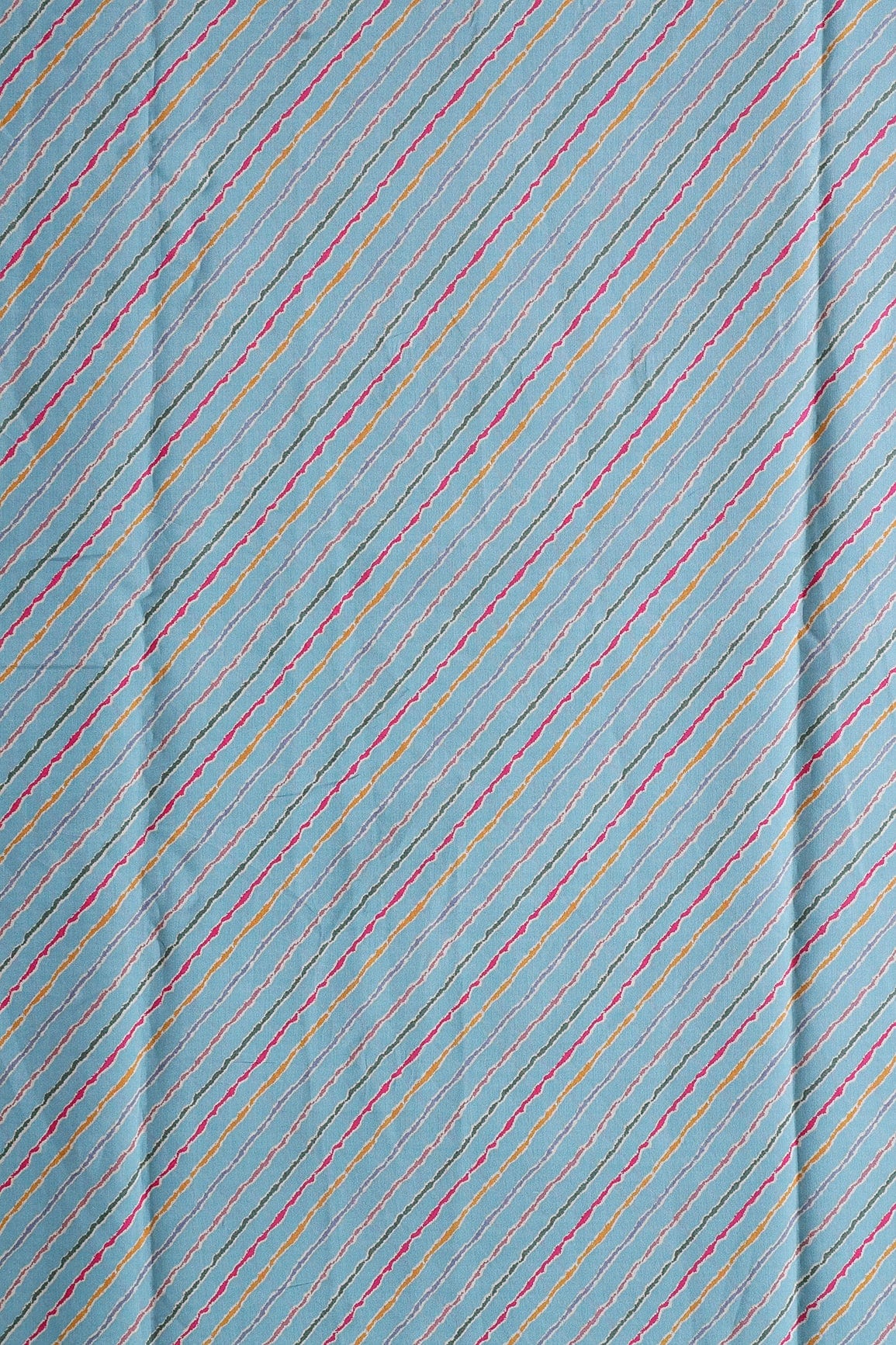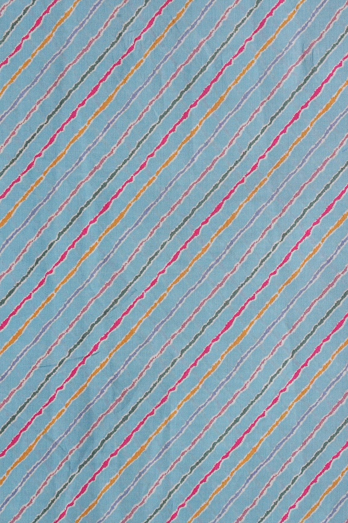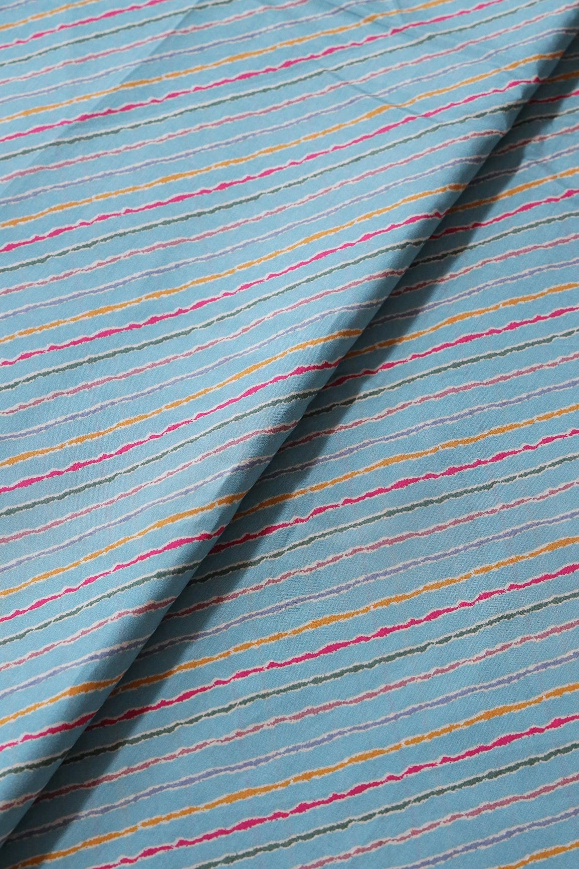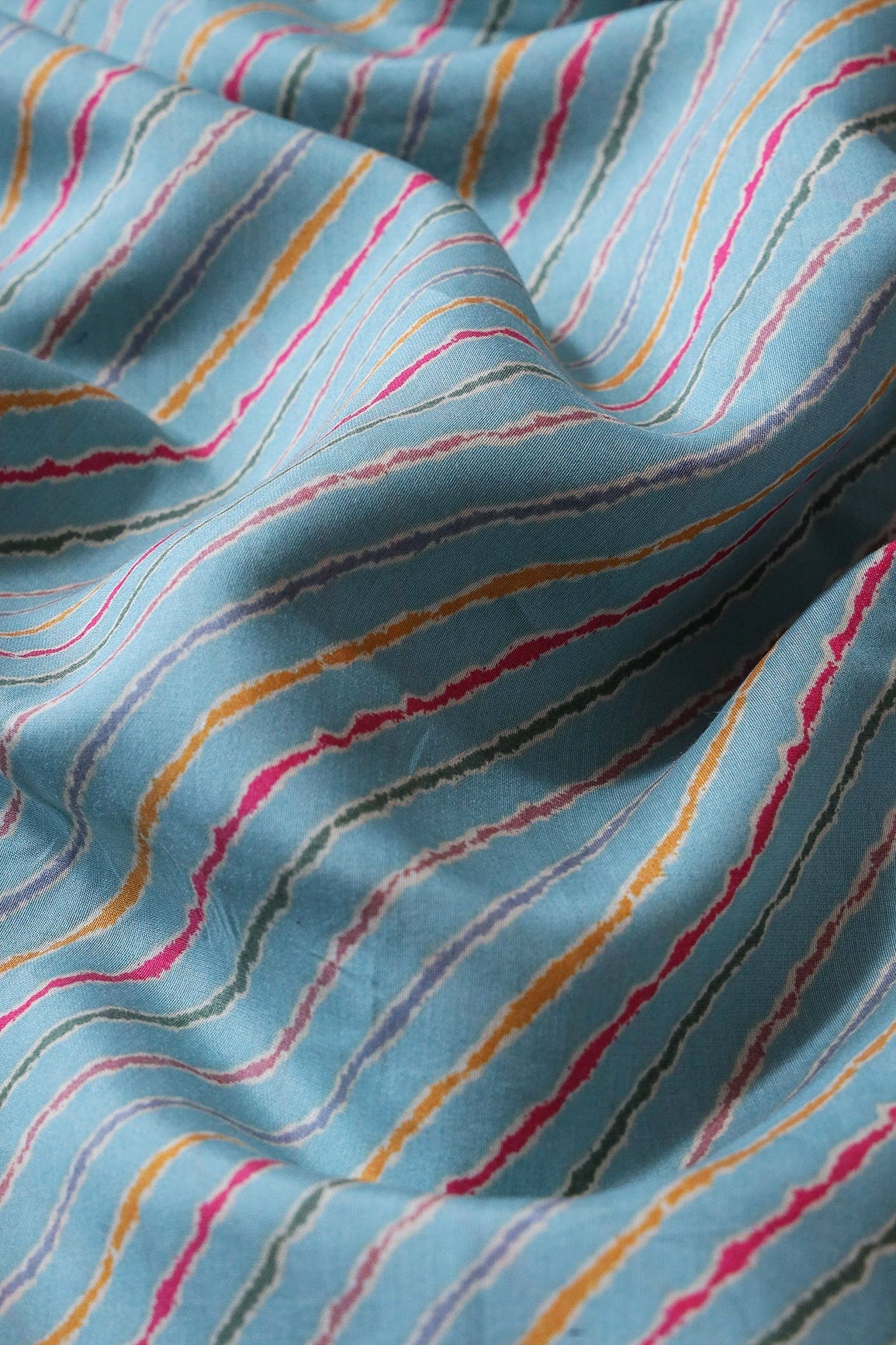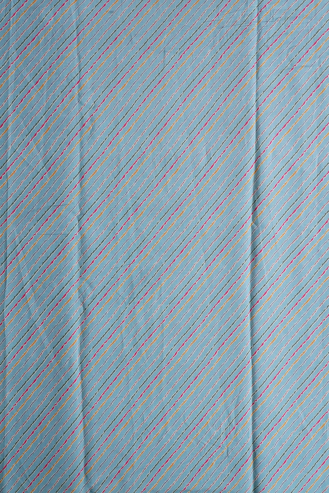 Multicolor Stripes Print On Sky blue Viscose Chanderi Silk Fabric