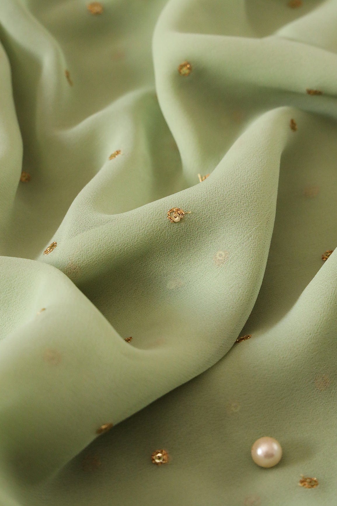 Fabric 1/ Saree : Gold Sequins With Gold Zari Small Motif Embroidery Work On Olive Georgette Fabric