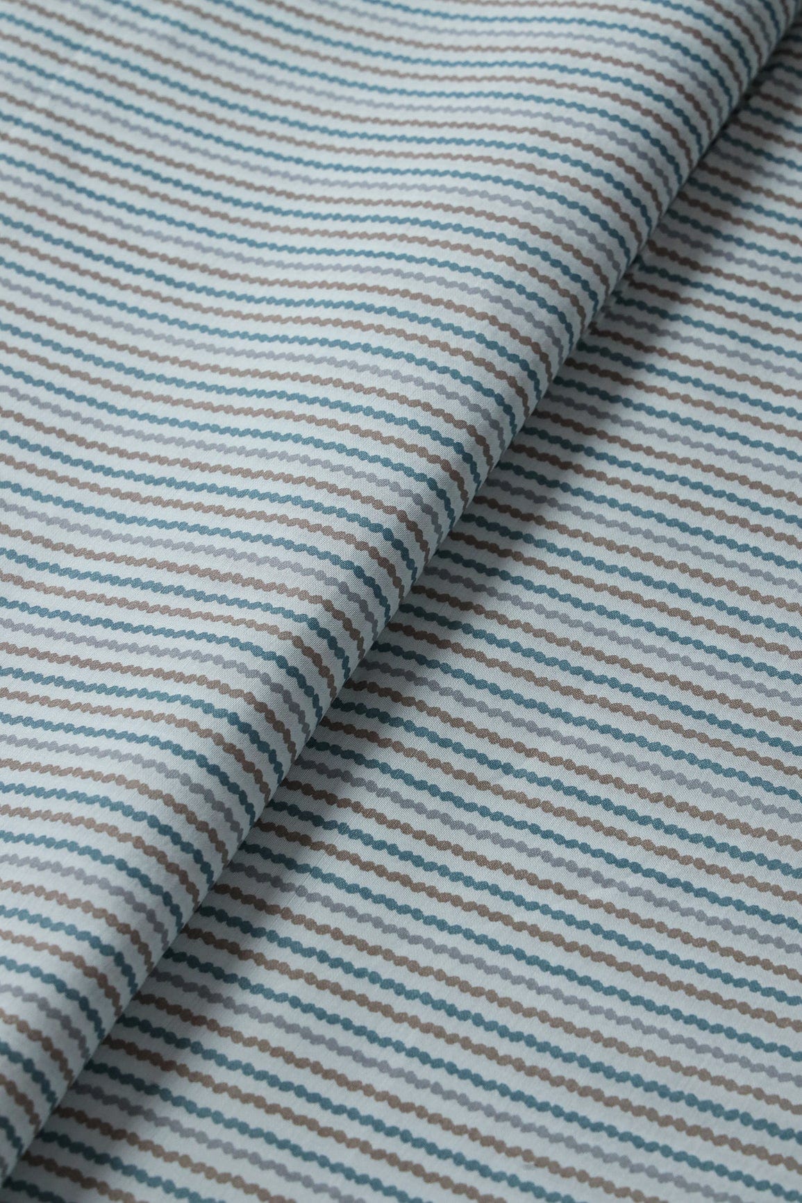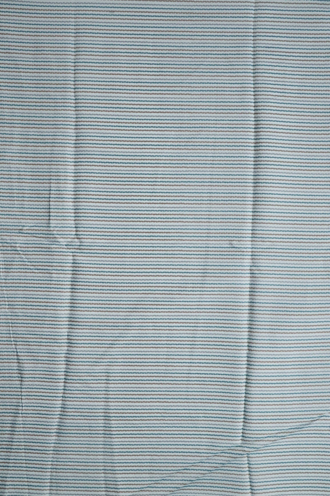 Pastel Blue And Brown Stripes Print On Viscose Chanderi Silk Fabric