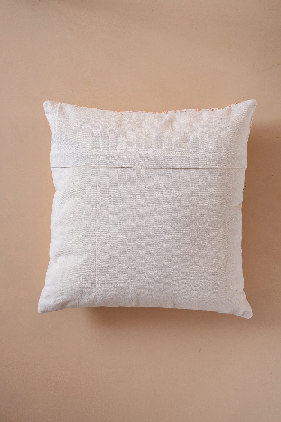 Peach Colour Floral Embroidery on Off White cotton Cushion Cover (16*16 inches)
