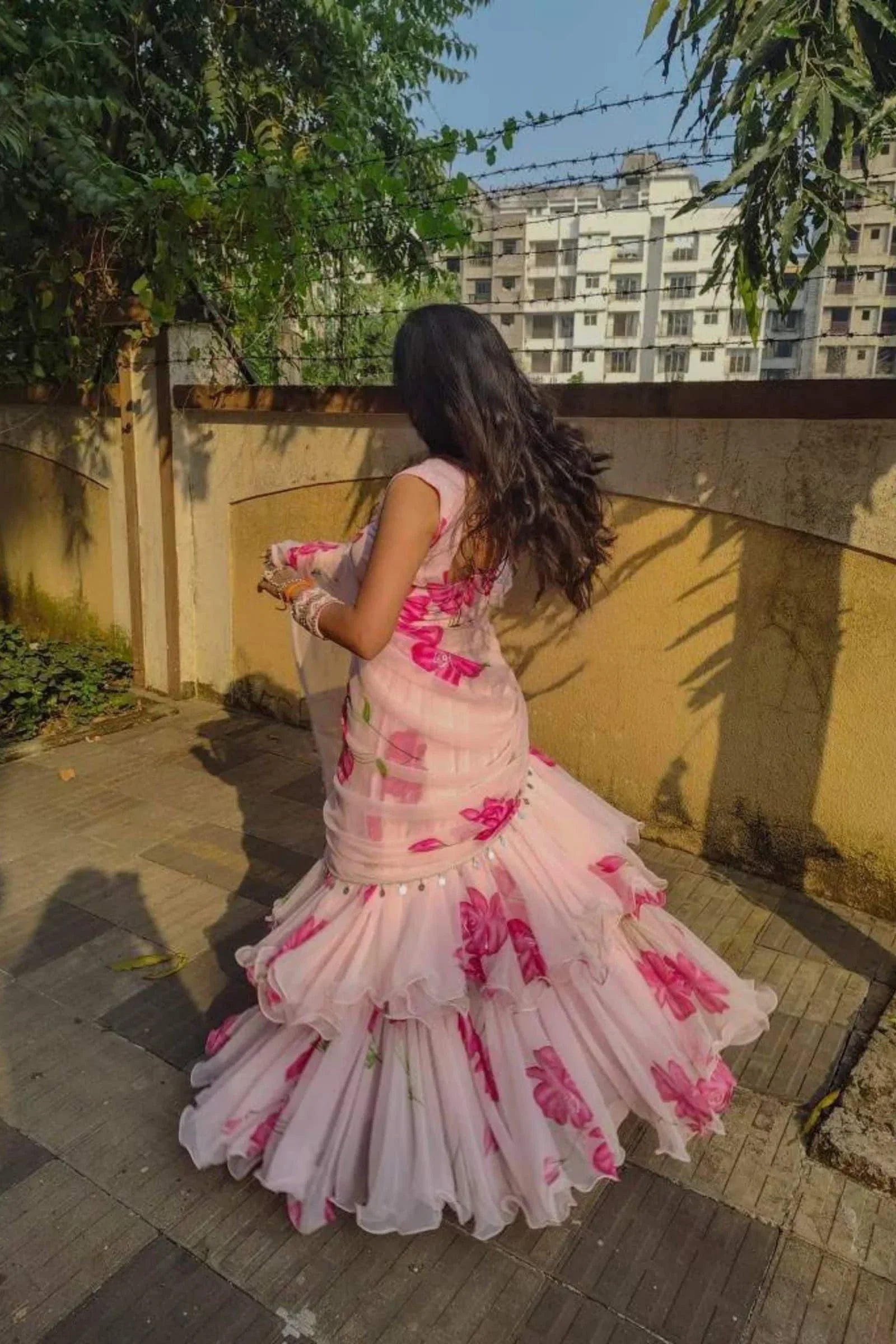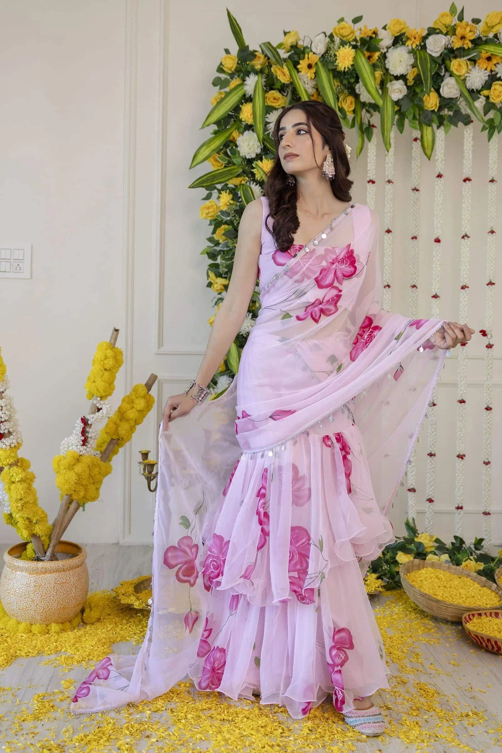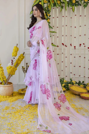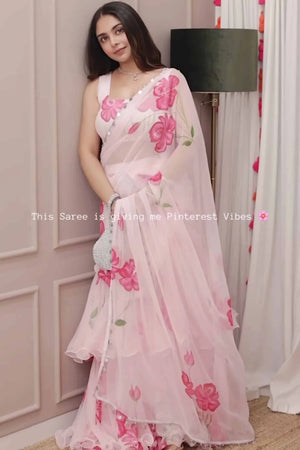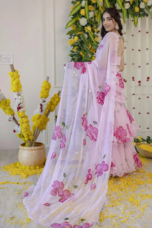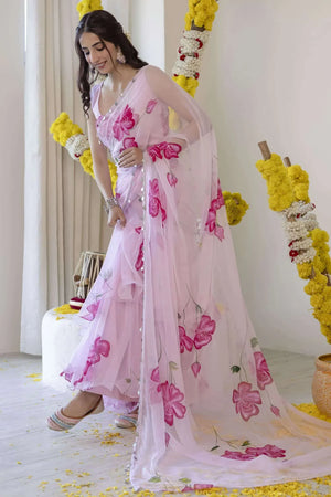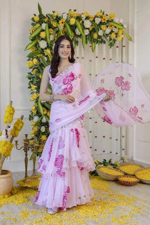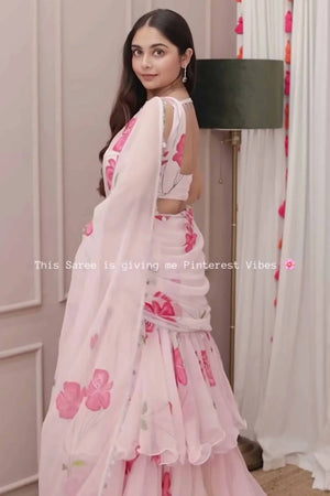 Pink Pre-Draped Saree