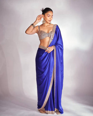 Pure Satin Silk Saree with Original Mirror & Embroidery Work