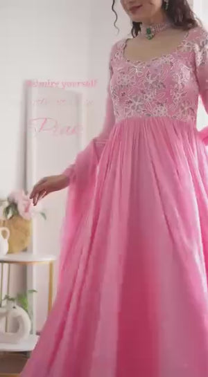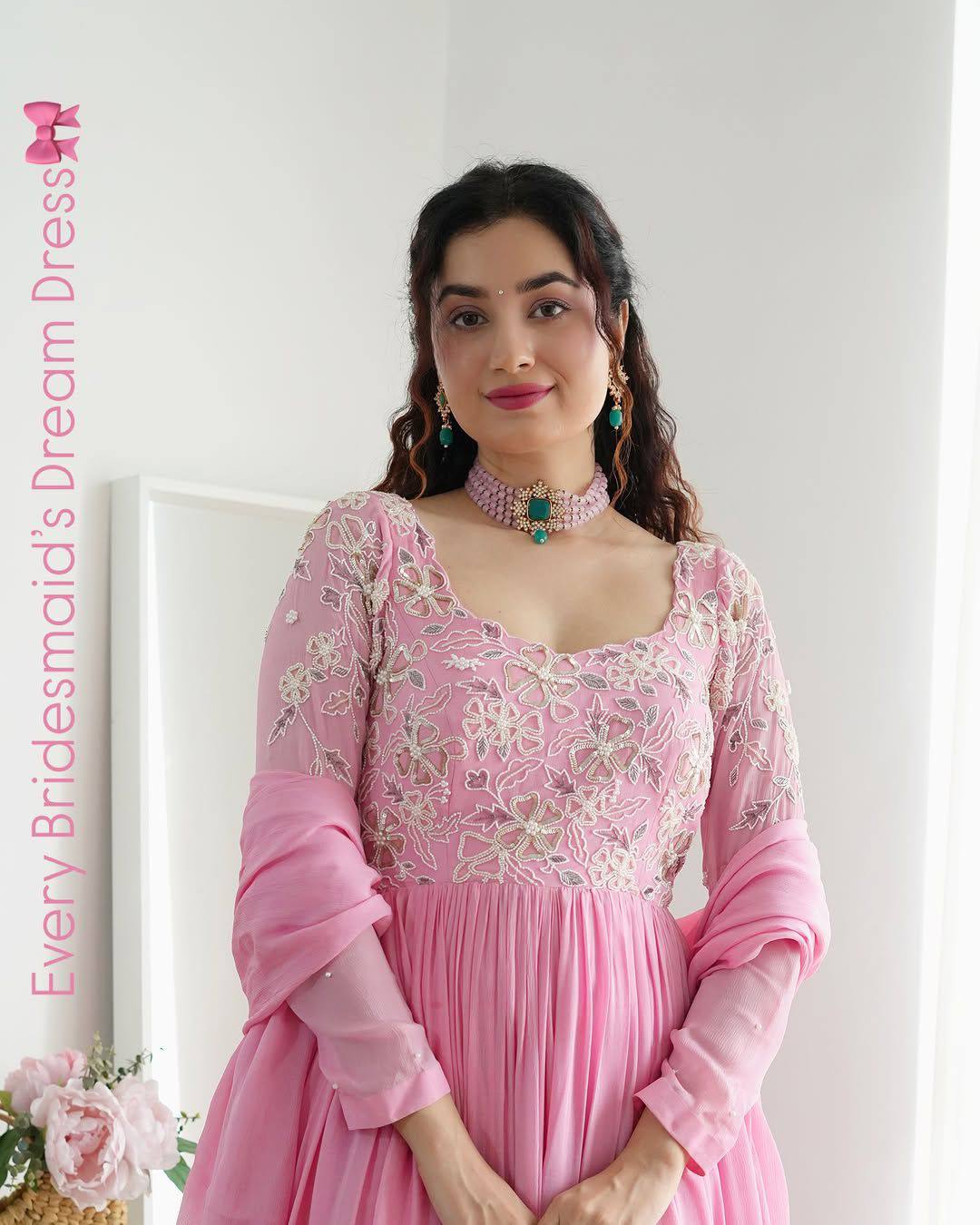 Rosy Anarkali Gown Set with Embroidered Dupatta