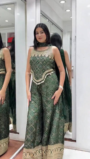 #PALAZZO WORK : *FANCY DIGITAL PRINT WITH EMBROIDERED SEQUENCE WORK*