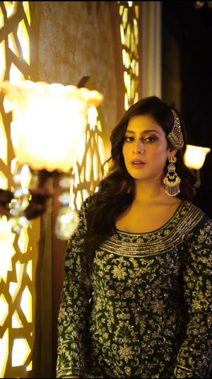 • Fabric: Pure GMY silk with heavy embroidery coding and 3mm sequence work, full sleeves