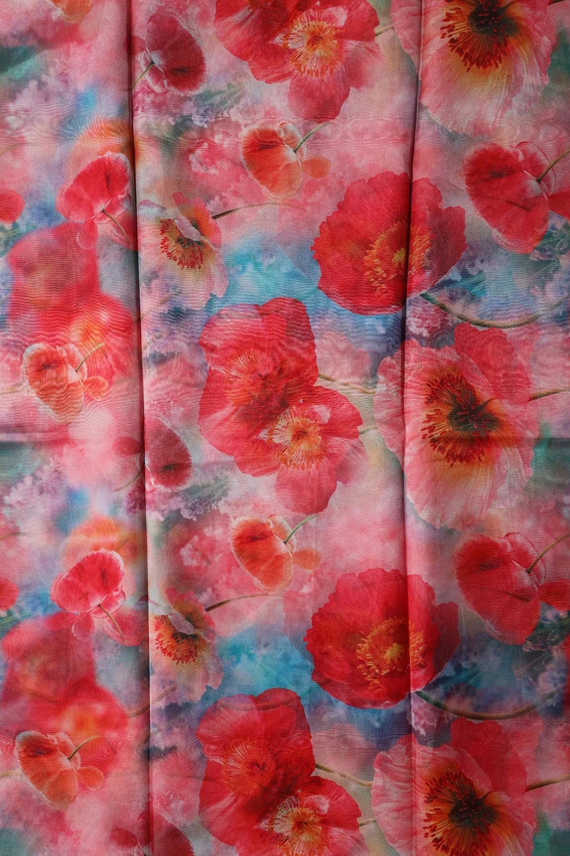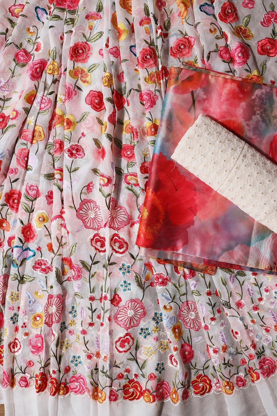 Fabric 3/Dupatta : Multi Color Beautiful Floral Digital Print On Organza Fabric
