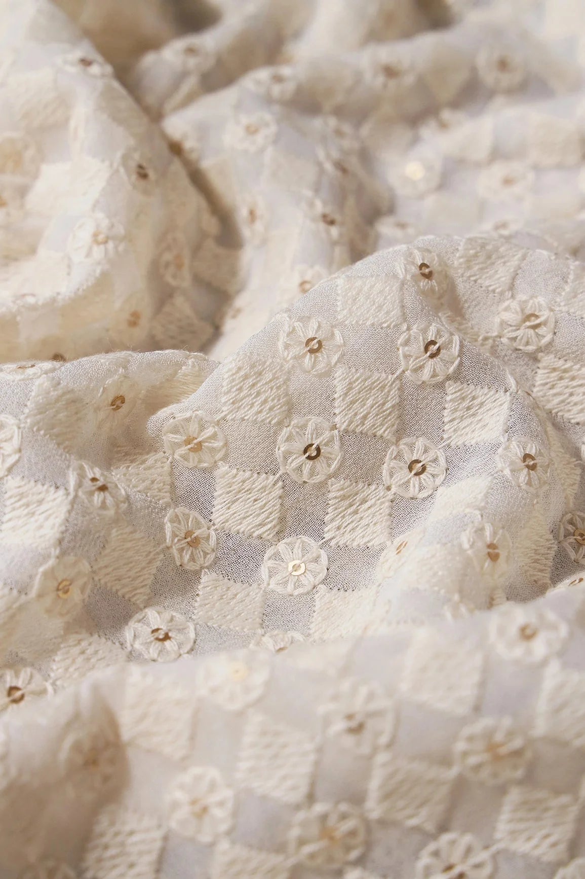 Fabric 2/ Blouse : White Thread With Sequins Geometric Lucknowi Embroidery On Dyeable Pure Viscose Georgette Fabric