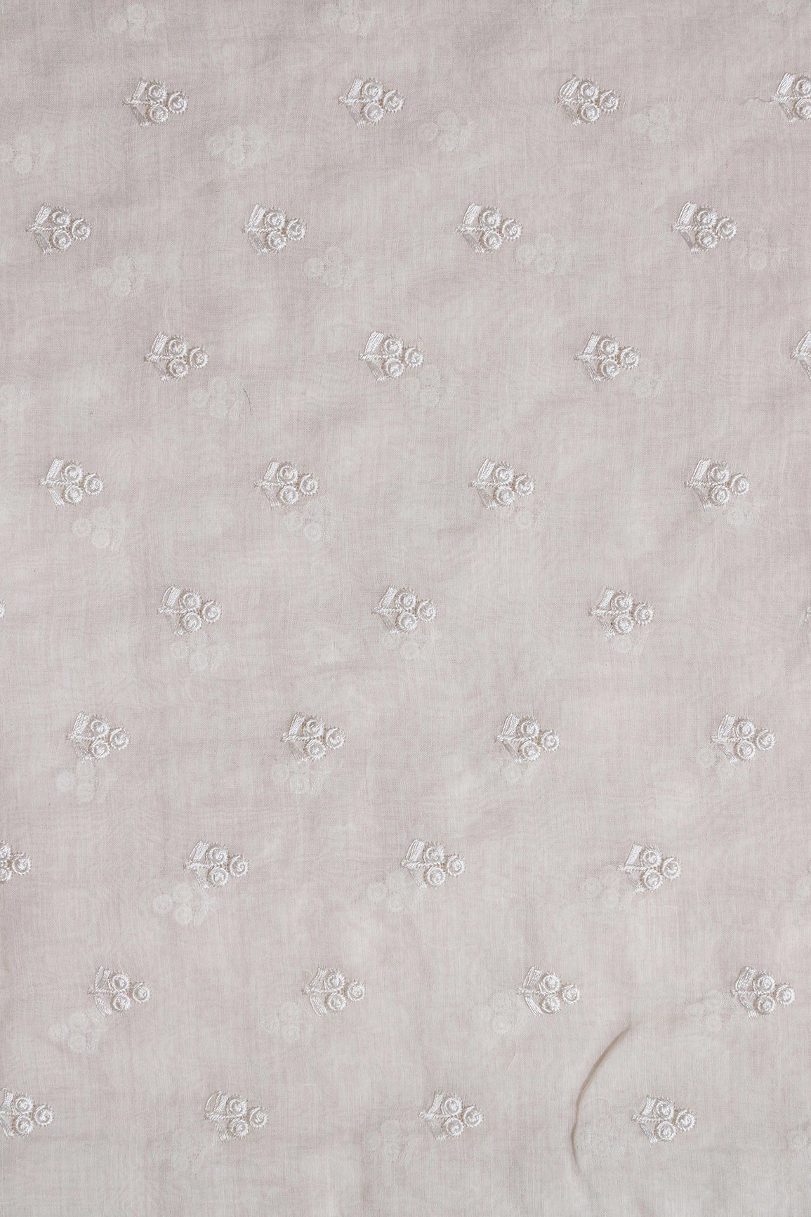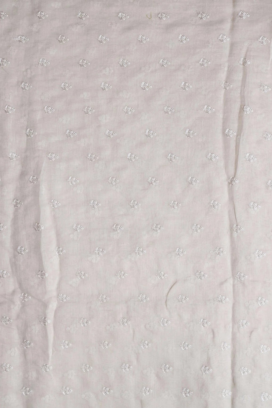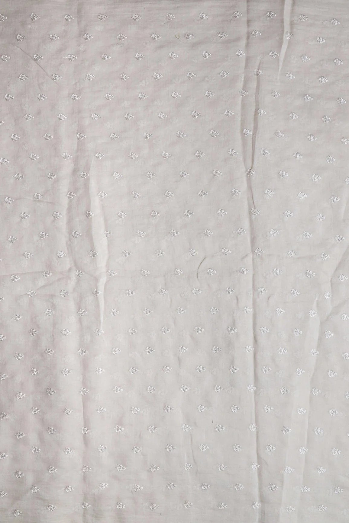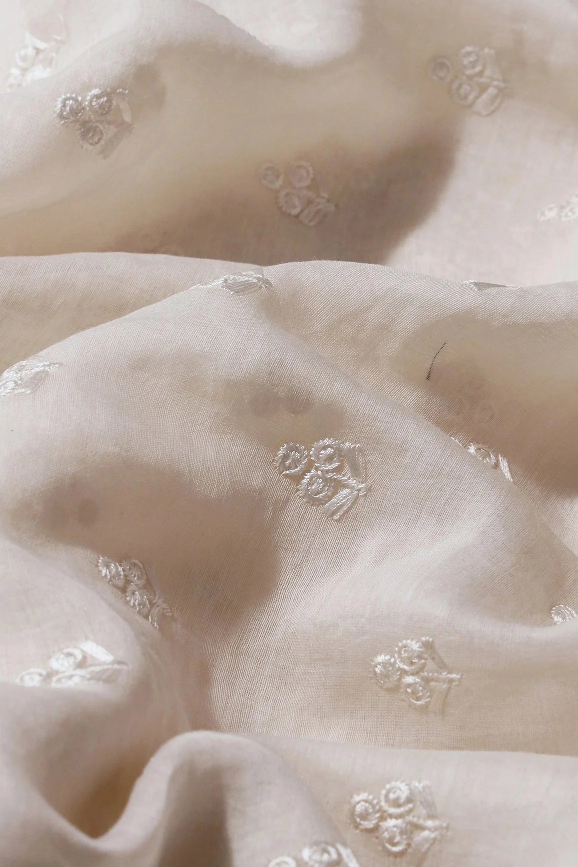 White Thread Small Floral Motif Embroidery On Cream Pure Banarasi Chanderi Silk Fabric