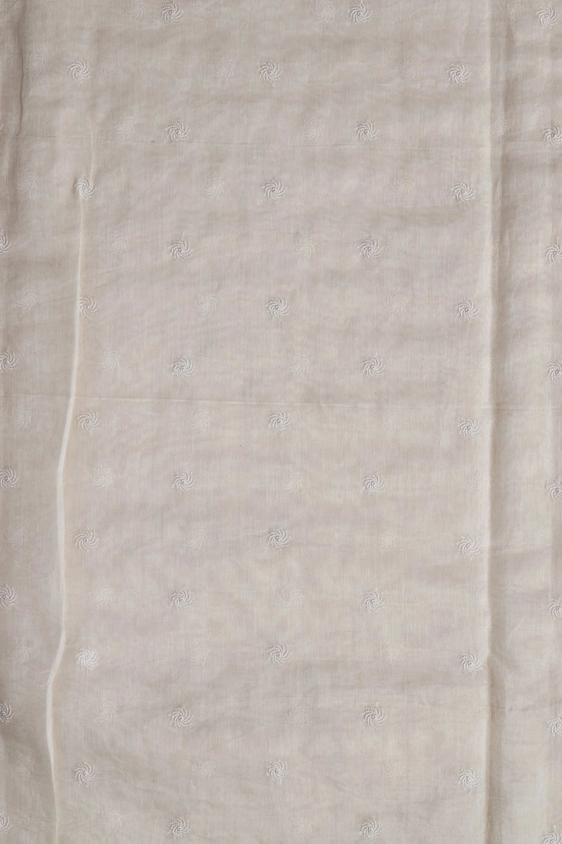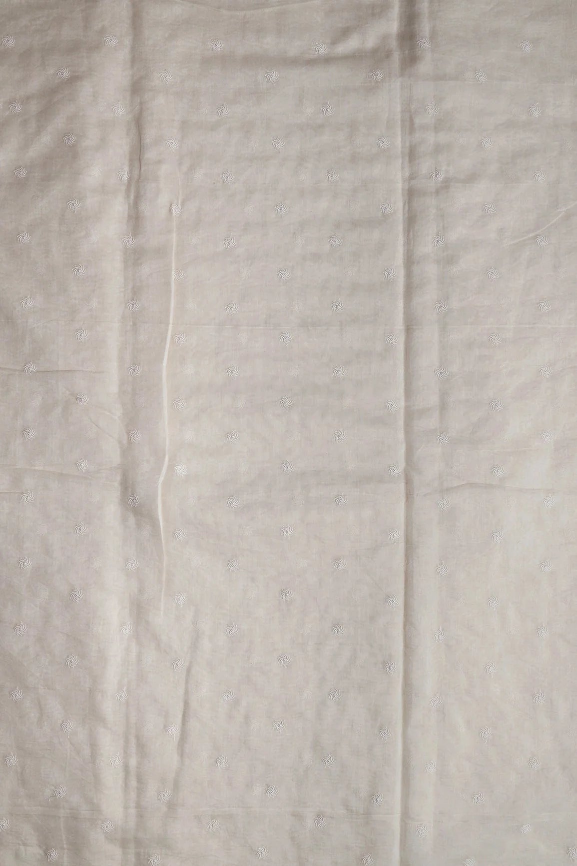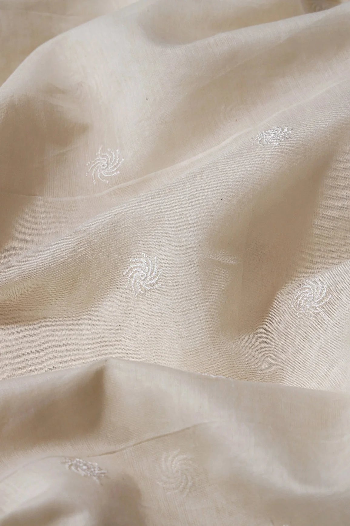 White Thread Small Motif Embroidery On Cream Pure Banarasi Chanderi Silk Fabric